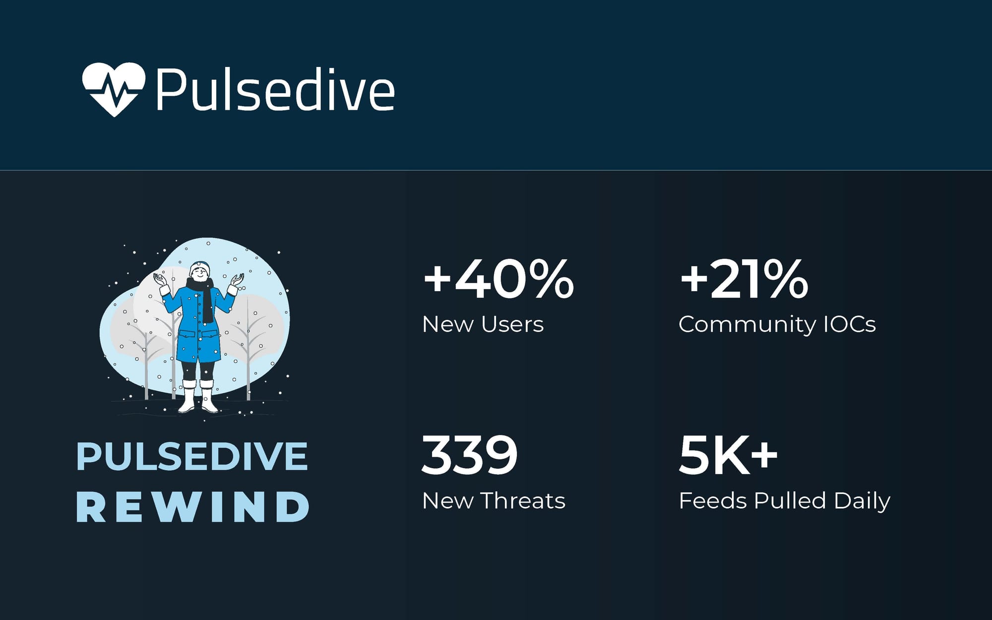 We can’t say it enough: feedback from our community keeps us motivated and committed to making Pulsedive better every year. When we get messages out of the blue like “I just want to send a HUGE thank you and congratulations to all of the team that built and maintains this awesome platform!” and “You folks are great, thanks for being such a wonderful group in the Intel space”, it continues to solidify why we do what we do, and how we do it every day.