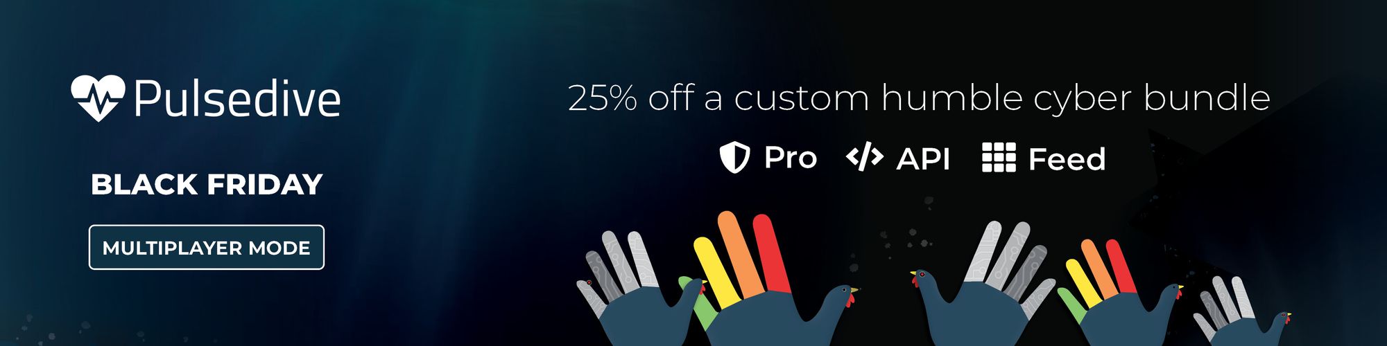 Get 50% off your first 12 months of Pulsedive Pro by using code "BLACKFRIDAY22" during checkout before 11/30/2022.