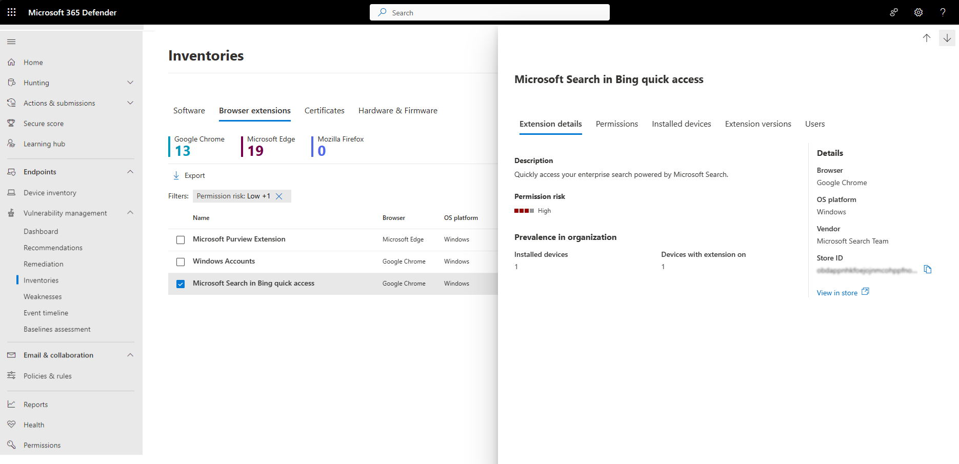 For Corporate IT teams that control web browser settings for employees can use tools like Intune to enforce policies determining what extensions can be installed. Before restricting browser extensions within an environment, it would be beneficial to identify what extensions are currently used within the organization. This will allow teams to determine which extensions are required for business use.