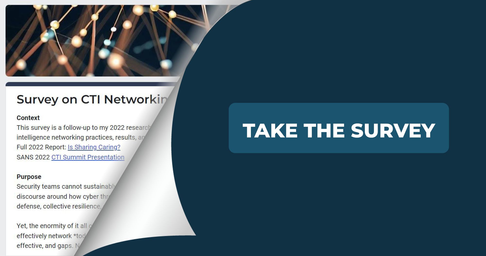 Don't forget to lend a hand to the CTI community by participating in the CTI Networking Survey before Thanksgiving. Sharing your perspective and insights will help define and refine the world of threat intelligence collaboration.