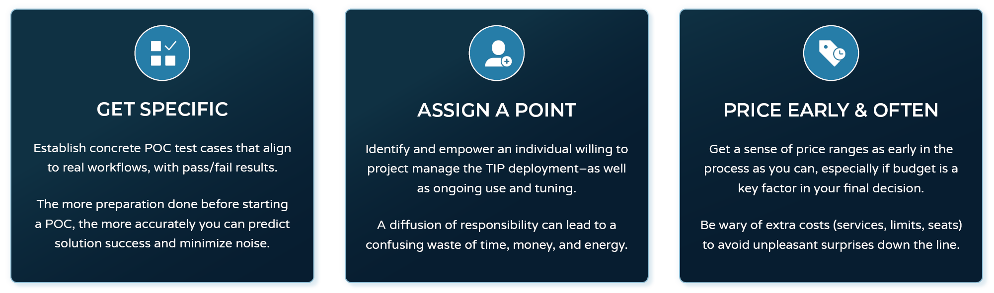 Researching and procuring TIPs can be tough. Here's some words of wisdom collected from real teams who have gone through the POC and implementation process.