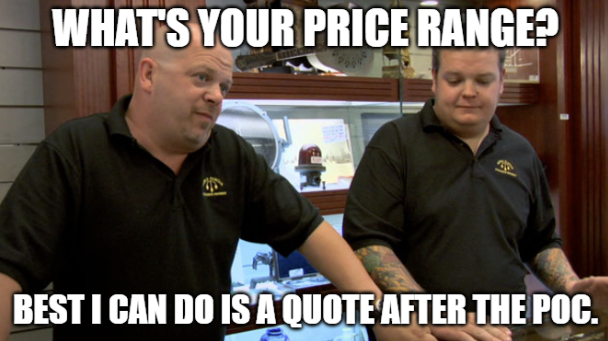 Side Note: Jokes aside, this is a two-way conversation. Since every organization and its needs vary widely, a ton of complexity may be baked into estimating an accurate initial cost range. Be honest about what you're looking for (need, want, nice to have) and can/cannot do.